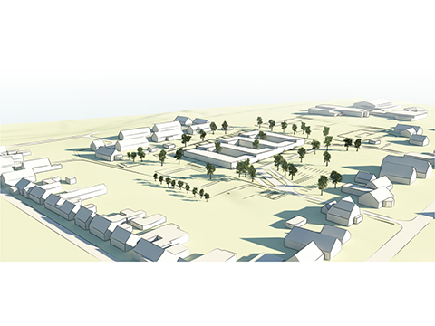 Die Grundidee des Entwurfes besteht darin, den vorhandenen Höhenverlauf des Geländes auszunutzen und die Räume um Innenhöfe in der Höhe gestaffelt zu gruppieren. Es werden reizvolle Blickbezüge aus den Klassenräumen über die Innenhöfe hinweg geschaffen; alle Klassenräume besitzen einen Zugang zum Außenraum. Durch die Anordnung der internen Erschließung entlang der orthogonalen Achsen und die einhüftige Anbindung der Räume erhalten die Flure eine sehr hohe Aufenthaltsqualität mit Ausblicken und Ausgängen ins Freie.